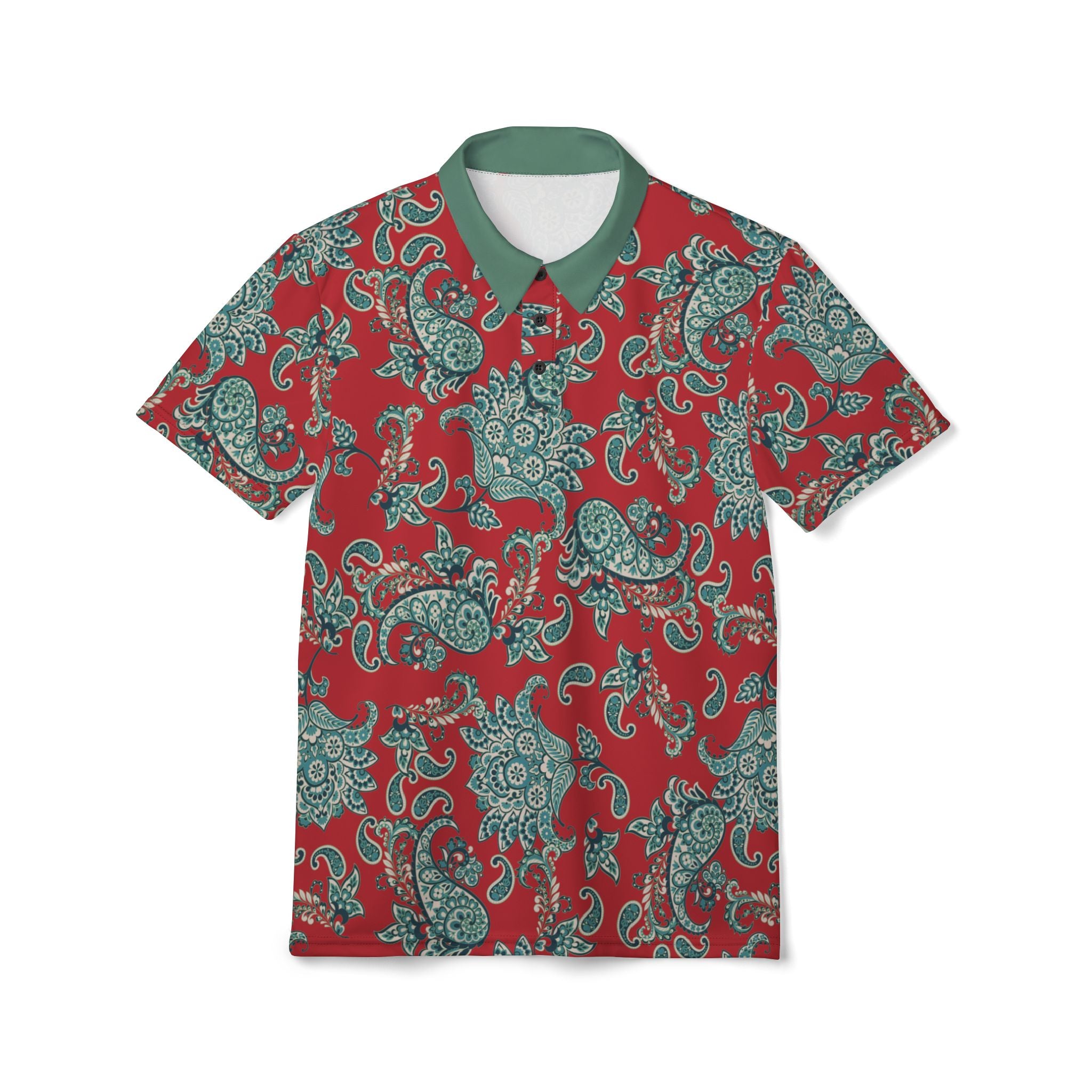 Crimson Paisley Polo (embroidered, lightweight athletic fabric)